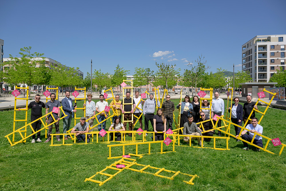 Bahnstadt: Gelbe Leitern erhöhen Sichtbarkeit von Geschäften und Gastronomie