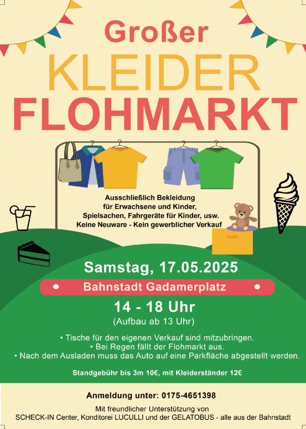 Der große Kleider-Flohmarkt findet am Samstag, 17. Mai, von 14 bis 18 Uhr wieder auf dem Gadamerplatz statt.