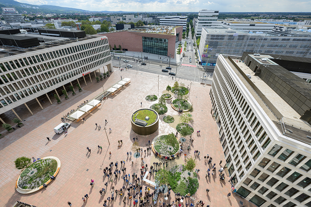 „Das Bauprojekt ist eines der größten Vorhaben in Heidelberg. Der neue Platz verbindet die Innenstadt mit der Bahnstadt und dem Konferenzzentrum. Hier entsteht ein Ort der Begegnung zwischen Menschen aus Heidelberg und Konferenzgästen aus aller Welt. Dafür wurde die Höhe des Areals so angepasst, dass ein schwellenloser Übergang zwischen Fußgängerbrücke und Czernyring möglich wurde“, ergänzte Erster Bürgermeister Jürgen Odszuck.