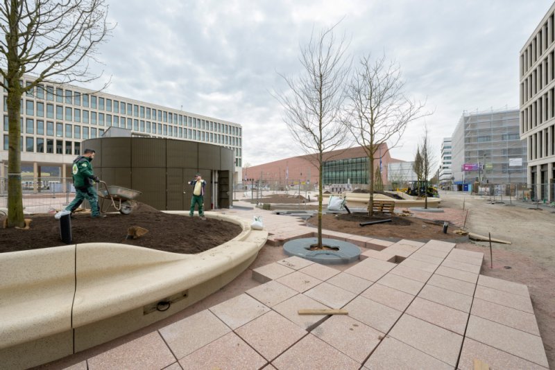 Passend zum Frühling wird der neue Europaplatz in der Bahnstadt grüner: Insgesamt werden derzeit rund 30 Bäume auf dem Platz gepflanzt. Der Fokus liegt hier auf Baumarten, die mit heißen urbanen Sommern in den Städten gut zurechtkommen, wie Japanischer Schnurbaum, Silberlinde, Hopfenbuche, Zelkove und Feldahorn.