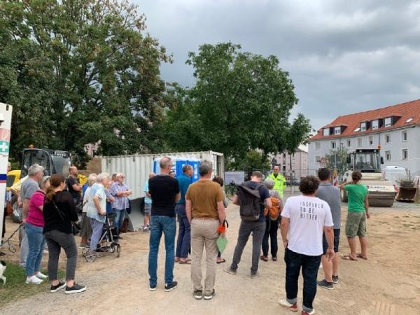 Wie laufen die Bauarbeiten ab? Wie verläuft die neue Brücke für Radfahrende sowie Fußgängerinnen und Fußgänger? Mitarbeitende der Stadt Heidelberg waren am Mittwoch, 13. September 2023, auf der Ochsenkopfwiese vor Ort, um Fragen von Anwohnerinnen und Anwohnern zu beantworten. Rund 30 Bürgerinnen und Bürger nutzten die Gelegenheit und informierten sich über das Baustellengeschehen.