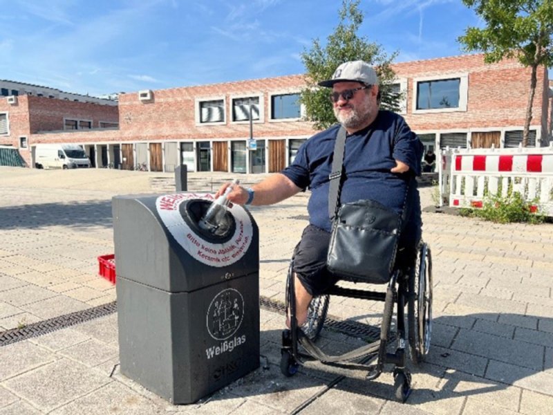 Die im Boden versenkten Altglas-Container am Gadamerplatz in der Bahnstadt fallen kaum auf. Oft fährt man sogar an ihnen vorbei, denn sie ragen kaum einen Meter über den Boden. Für Menschen wie Czeslaus Mandalka ist diese Höhe jedoch ganz entscheidend: Mandalka kann dort problemlos sein Leergut entsorgen – auch vom Rollstuhl aus. „Das ist eigentlich eine Kleinigkeit“, sagt der stellvertretende Vorsitzende des Beirats für Menschen mit Behinderungen (BMB) und Bahnstadtbewohner. „Aber sie trägt zu einem selbstbestimmten Leben bei.“
