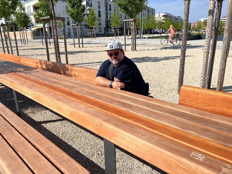 Czeslaus Mandalka ist zufrieden mit seiner Wohnsituation in der Bahnstadt. Die Bahnstadt sei für Menschen mit Behinderung alternativlos in Heidelberg. „Ob Home-Office oder der Gang zum Arzt: Das Meiste ist gut machbar“, meint Mandalka. „Und die Promenade ist schon ein Highlight, viele Freunde kommen sogar von außerhalb zum Fahren oder Kaffee trinken.“